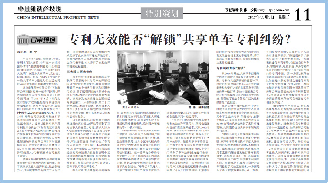 2017年11月1日,《中國知識(shí)產(chǎn)權(quán)報(bào)》整版予以專題報(bào)道。