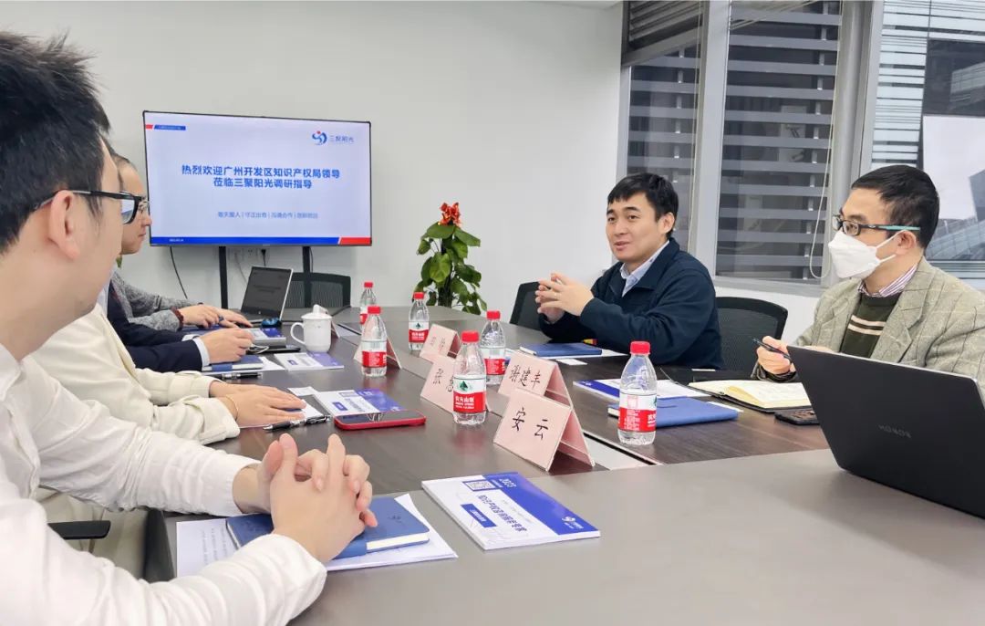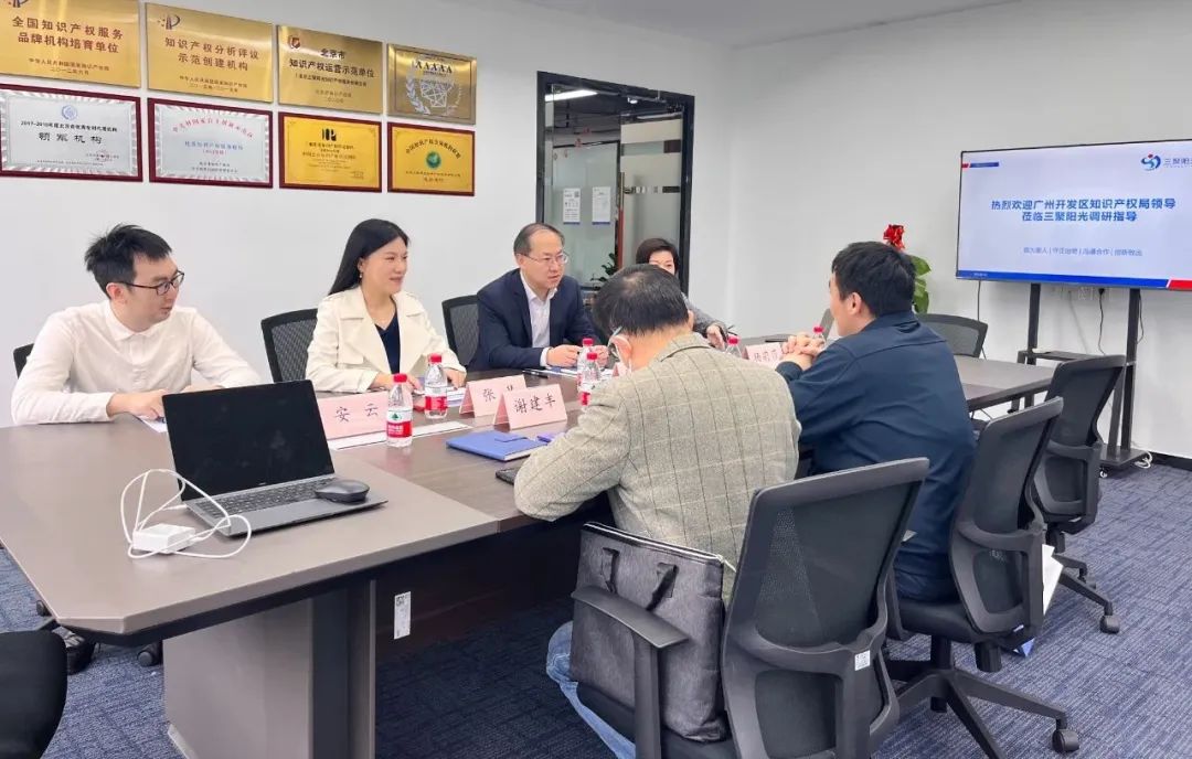 日前,廣州開(kāi)發(fā)區(qū)知識(shí)產(chǎn)權(quán)局田帥副局長(zhǎng)、謝建豐處長(zhǎng)一行蒞臨我司廣州公司調(diào)研指導(dǎo),集團(tuán)總裁張建綱、華南區(qū)總經(jīng)理張慧等接待。