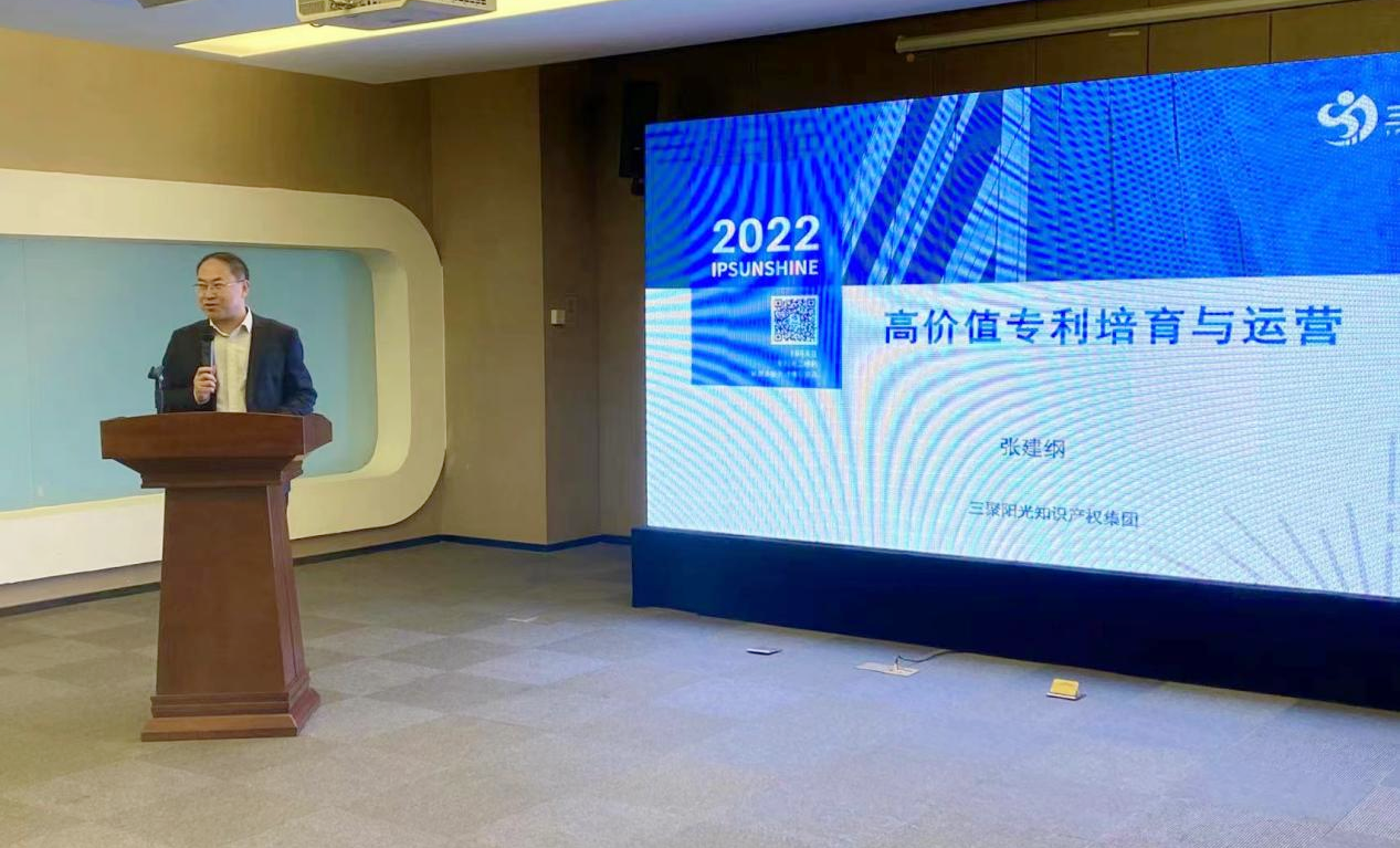 三聚陽光總裁張建綱為企業(yè)帶來了高價(jià)值專利培育與運(yùn)營培訓(xùn)。張建綱總裁結(jié)合實(shí)際案例向企業(yè)論述了高價(jià)值專利培育的概念、培育機(jī)制、運(yùn)營價(jià)值等方面,并簡單介紹了三聚陽光知識(shí)產(chǎn)權(quán)集團(tuán)的發(fā)展情況。