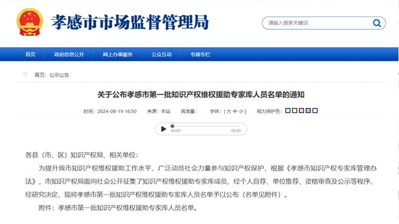近日,湖北省孝感市市場監(jiān)督管理局正式公布了首批知識產(chǎn)權(quán)維權(quán)援助專家?guī)斐蓡T名單,三聚陽光總裁張建綱、副總裁高東輝、副總裁朱正強(qiáng)、咨詢業(yè)務(wù)總監(jiān)羅嘯、研究咨詢部經(jīng)理向長松、解立艷、龐世崇七位專家成功入選。這一殊榮不僅體現(xiàn)了三聚陽光在知識產(chǎn)權(quán)維權(quán)援助領(lǐng)域的卓越實(shí)力,也展示了公司在知識產(chǎn)權(quán)服務(wù)領(lǐng)域的廣泛認(rèn)可與深厚積淀。