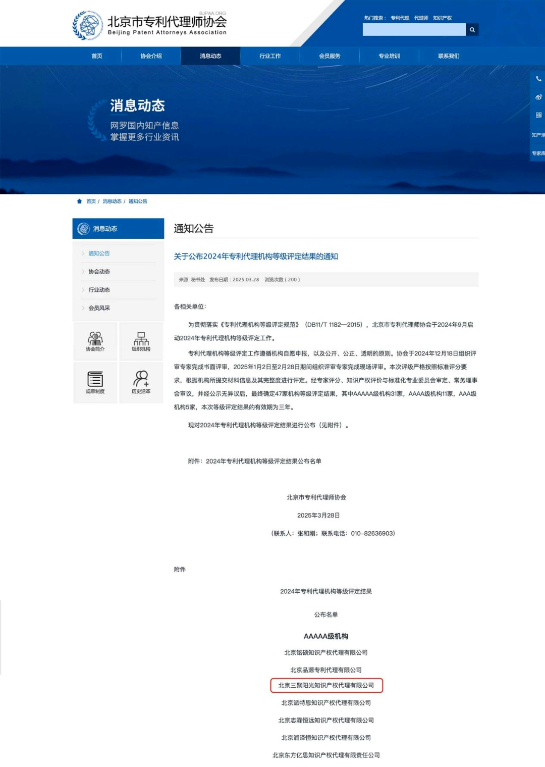 AAAAA級是北京市專利代理師協(xié)會對行業(yè)機(jī)構(gòu)進(jìn)行的最高級別等級評定,全面衡量機(jī)構(gòu)在專業(yè)水平、服務(wù)能力、隊(duì)伍建設(shè)、運(yùn)營管理及社會責(zé)任等維度的綜合實(shí)力。此次蟬聯(lián)最高評級,不僅是對三聚陽光專業(yè)團(tuán)隊(duì)辛勤付出的肯定,也是對公司持續(xù)創(chuàng)新和卓越服務(wù)的認(rèn)可。