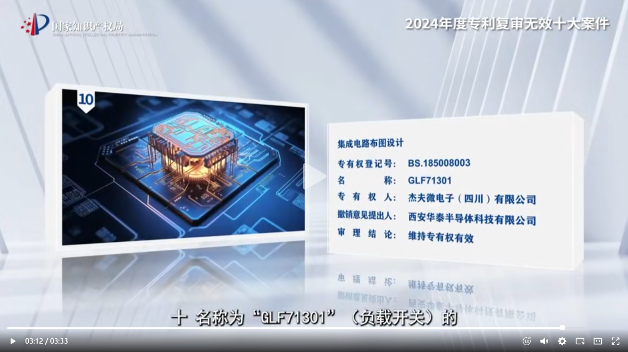 4月26日,國家知識產(chǎn)權(quán)局發(fā)布2024年度專利復(fù)審無效十大案件,三聚陽光代理的“名稱為“GLF71301”(負載開關(guān))的集成電路布圖設(shè)計專有權(quán)撤銷案”入選。本案明晰了《集成電路布圖設(shè)計保護條例》規(guī)定的“商業(yè)利用”中“以其他方式提供”的法律內(nèi)涵,對獨創(chuàng)性部分的確定和判斷標(biāo)準(zhǔn)提供了審理指引。