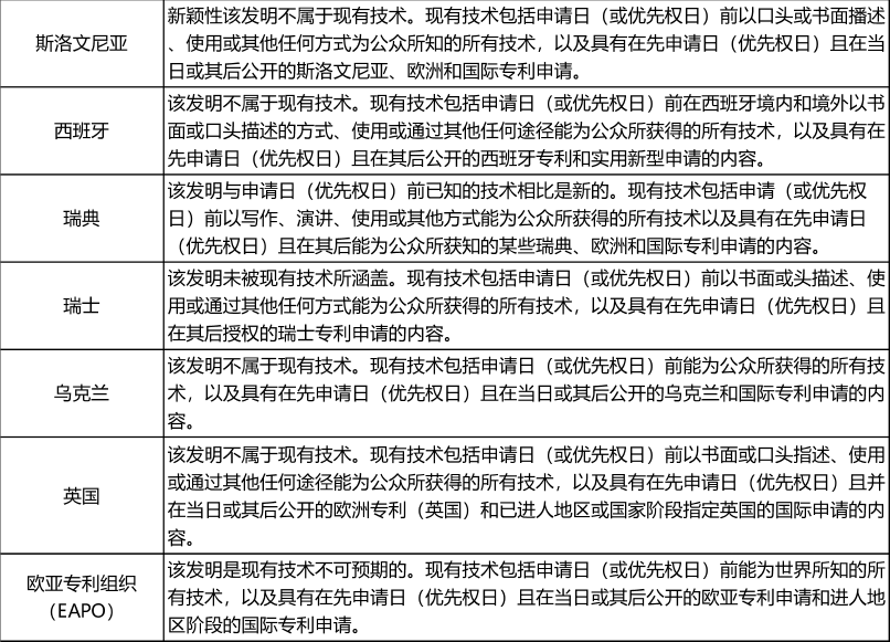 附:各國對(duì)“新穎性”的定義(歐洲篇)